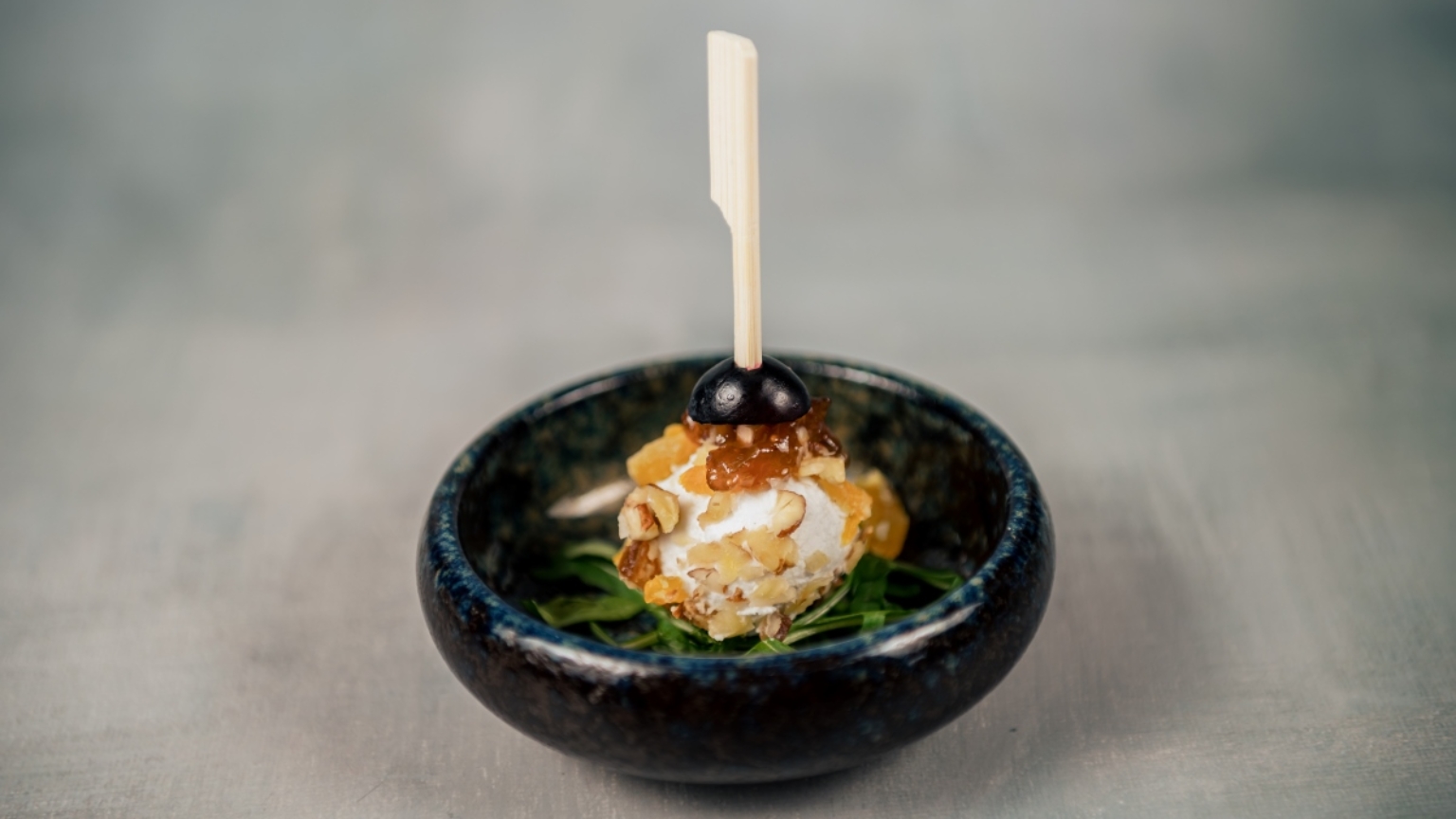 - Achterhoekse geitenkaas, mangomayonaise, roggebrood kruim, gedroogde abrikoos en dadel